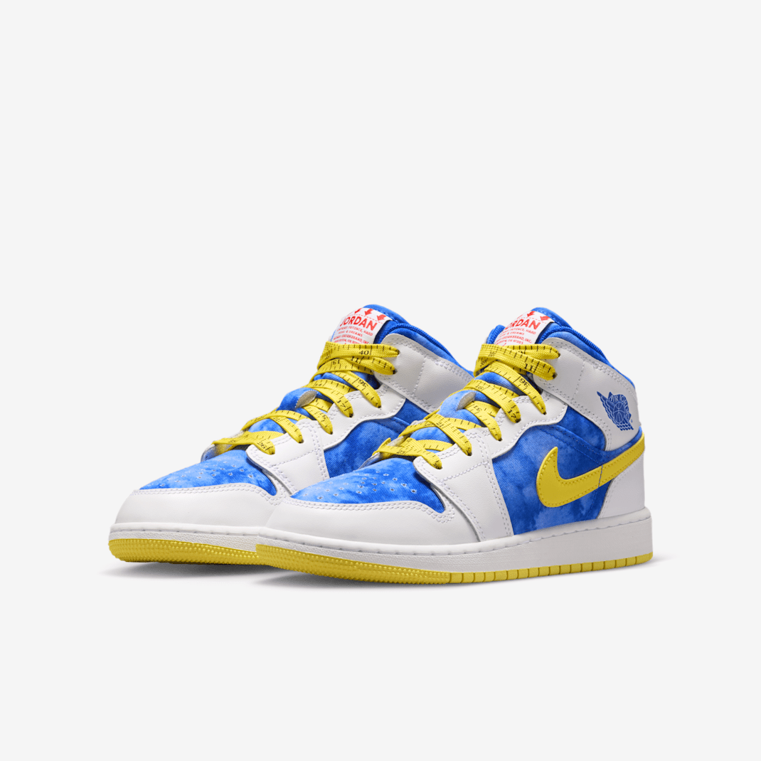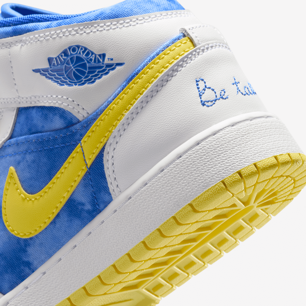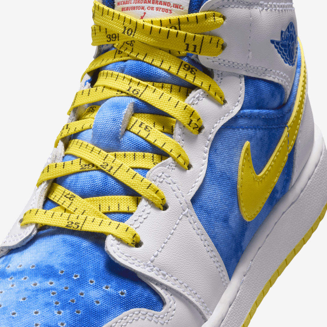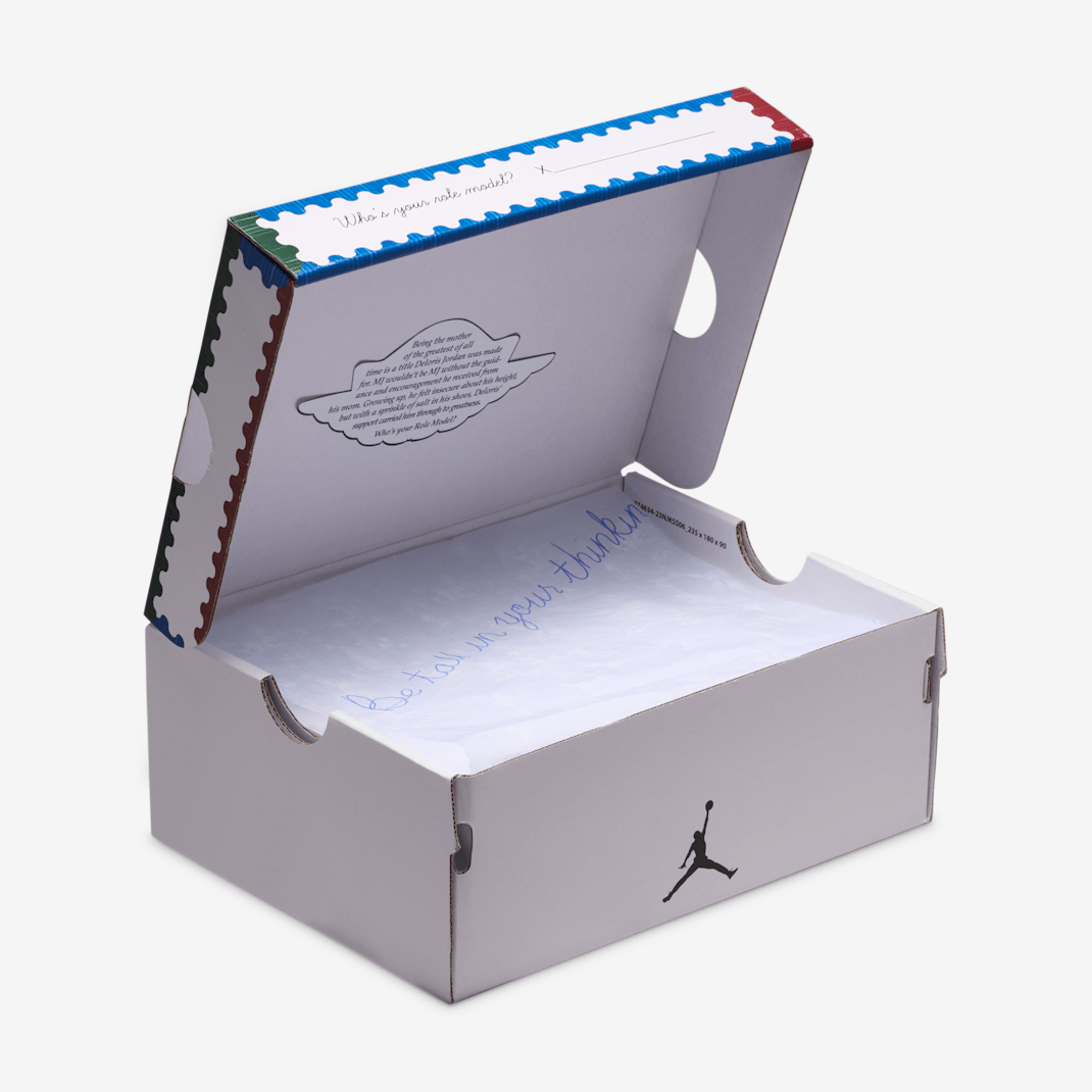 As a kid, MJ worried about his height. To help him grow tall, his mom sprinkled salt in his sneakers. These Jordans pay tribute to Deloris’ loving support with salt-inspired details like the salt wash effect we applied to the upper’s canvas panels. Laces inspired by a measuring tape, a tongue label inspired by salt packets and a special embroidered message on the heel finish the look by encouraging you to think big.