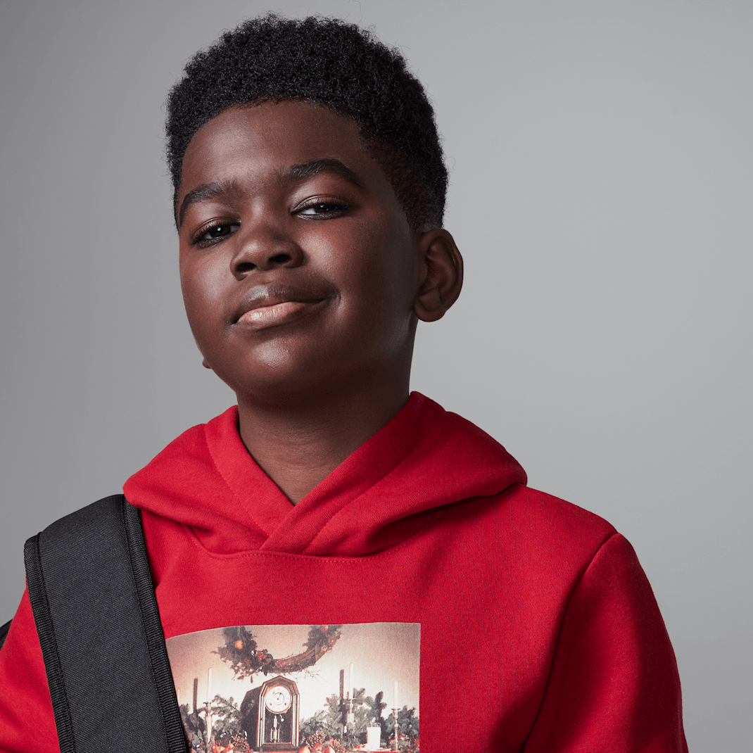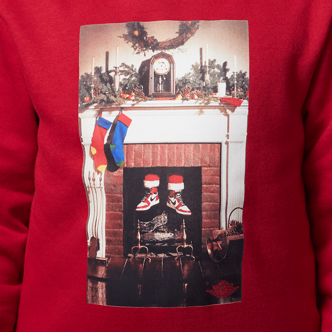 The Air Jordan Hoodie features a photorealistic graphic of Jordans sneaking down the chimney, offering heritage style for the holidays. Lightweight fleece fabric is smooth on the outside and brushed on the inside for extra warmth and softness.
