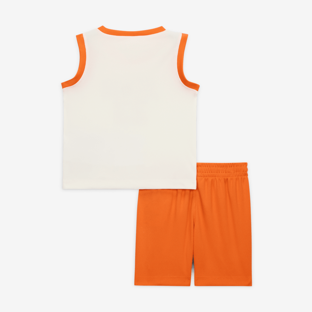 Get your little baller-to-be kitted out in this 2-piece set, designed in the style of a basketball uniform and made of breathable poly mesh fabric. The jersey has a classic cut with a regular fit and the matching shorts have a stretchy waistband for a comfy feel that’s easy to play and move in.