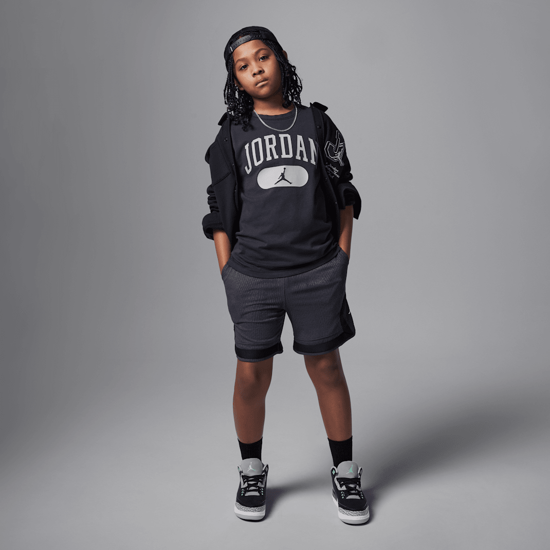 Elevate your style game with this tee, made of cotton jersey in a timeless, short sleeve silhouette. The tagless crewneck provides easy wear, and the shoulder are slightly dropped for a relaxed fit. Style with any Jordan bottoms for a coordinated look that complements your kicks.
