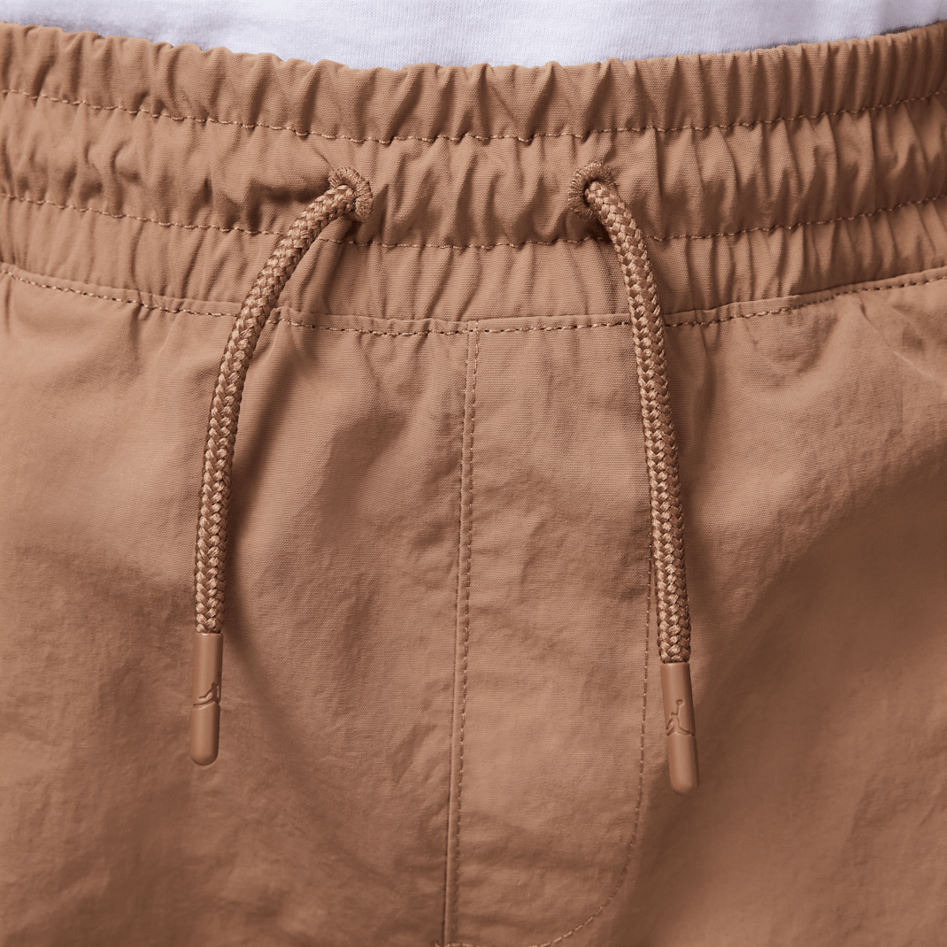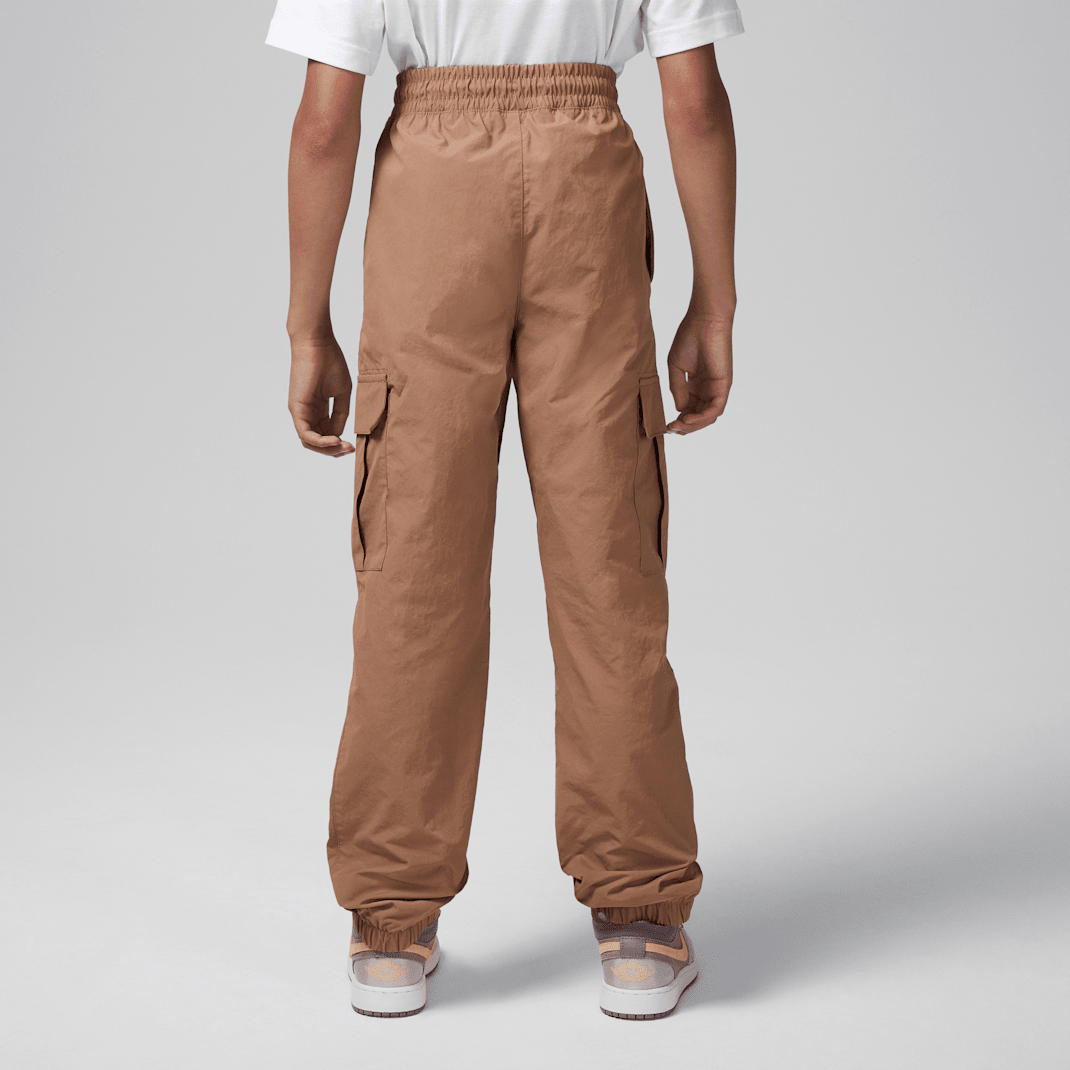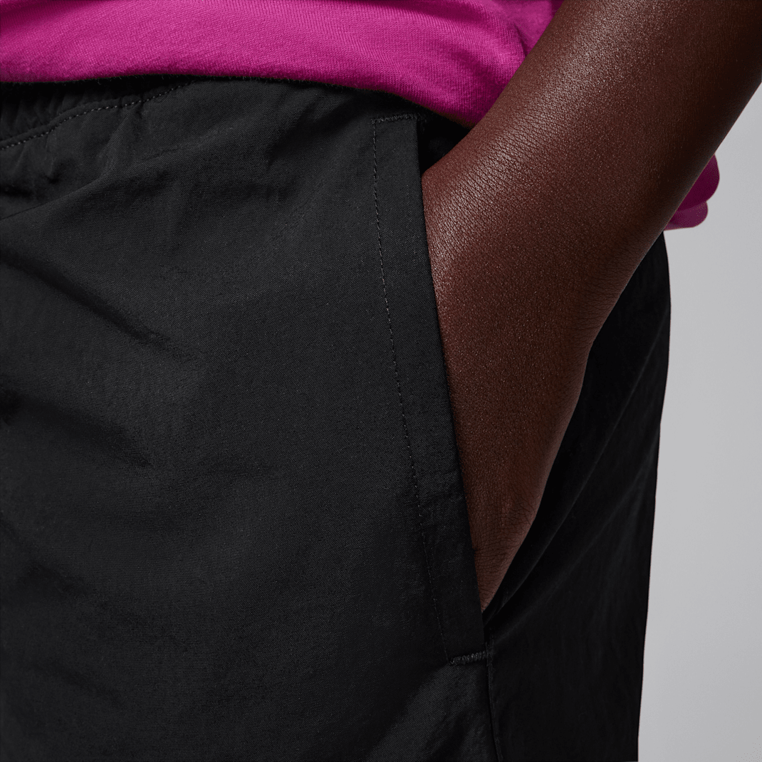 These pants are a classic jogger silhouette made of woven nylon fabric. The stretch waistband with drawcord provides a comfy feel, multiple pockets provide spots to stash small items and the tapered legs with elasticized cuffs provide a cozy, secure fit that spotlights your Jordans.