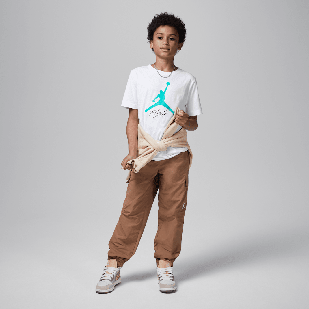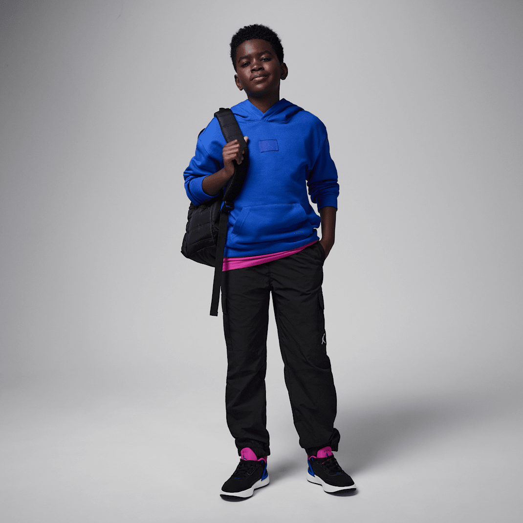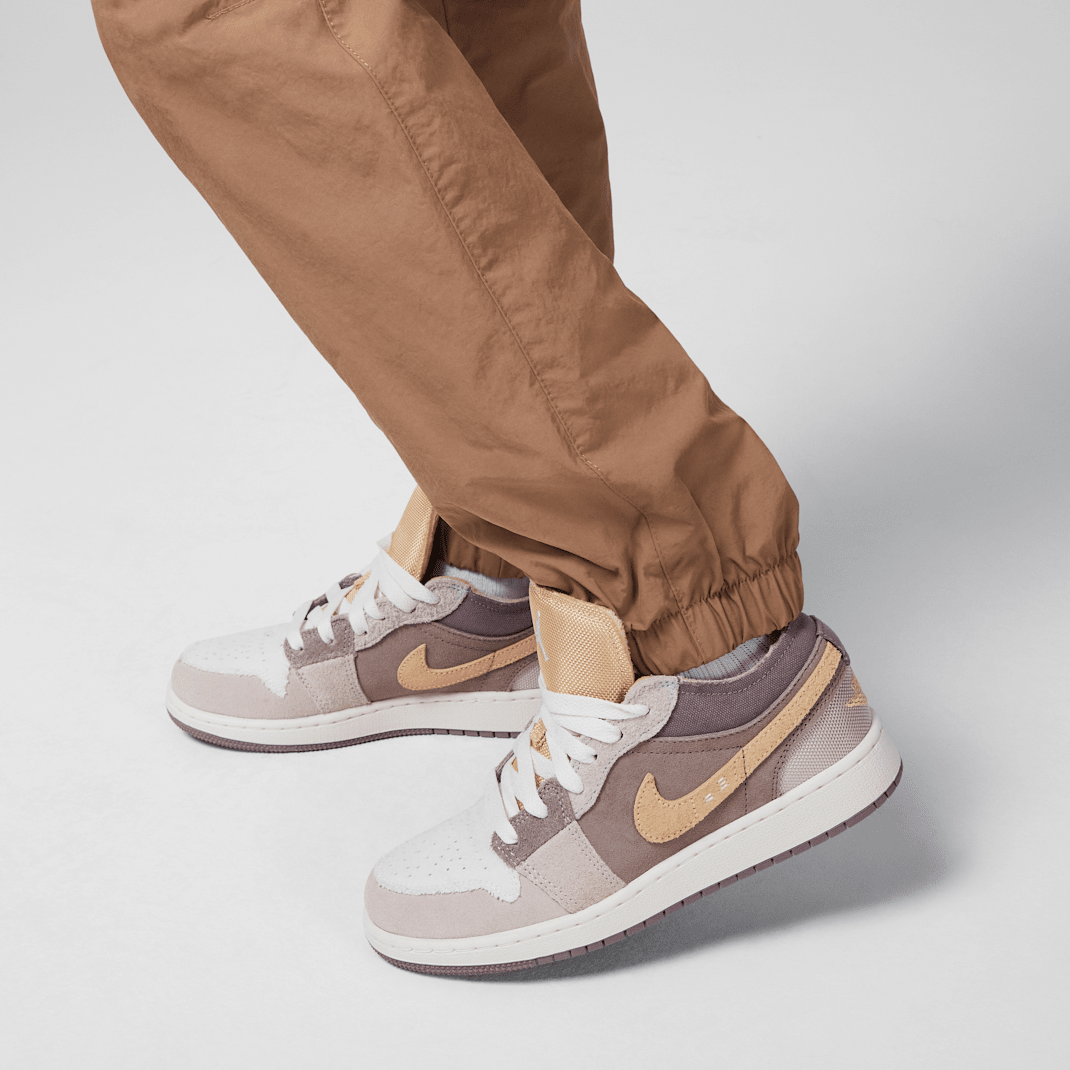 These pants are a classic jogger silhouette made of woven nylon fabric. The stretch waistband with drawcord provides a comfy feel, multiple pockets provide spots to stash small items and the tapered legs with elasticized cuffs provide a cozy, secure fit that spotlights your Jordans.