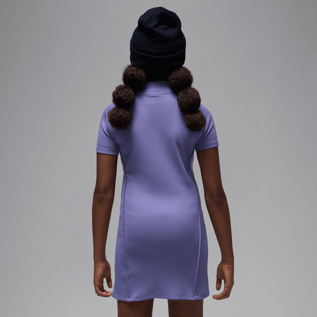Sleek and stylish, this dress looks just as great with mary janes or flats as it does with your favorite pair of Jordans. It’s made of cotton/poly rib knit fabric with added stretch so you can move however you want, comfortably. The mock neck is modern, short raglan sleeves add a sporty touch, and taping insets create a flattering silhouette.