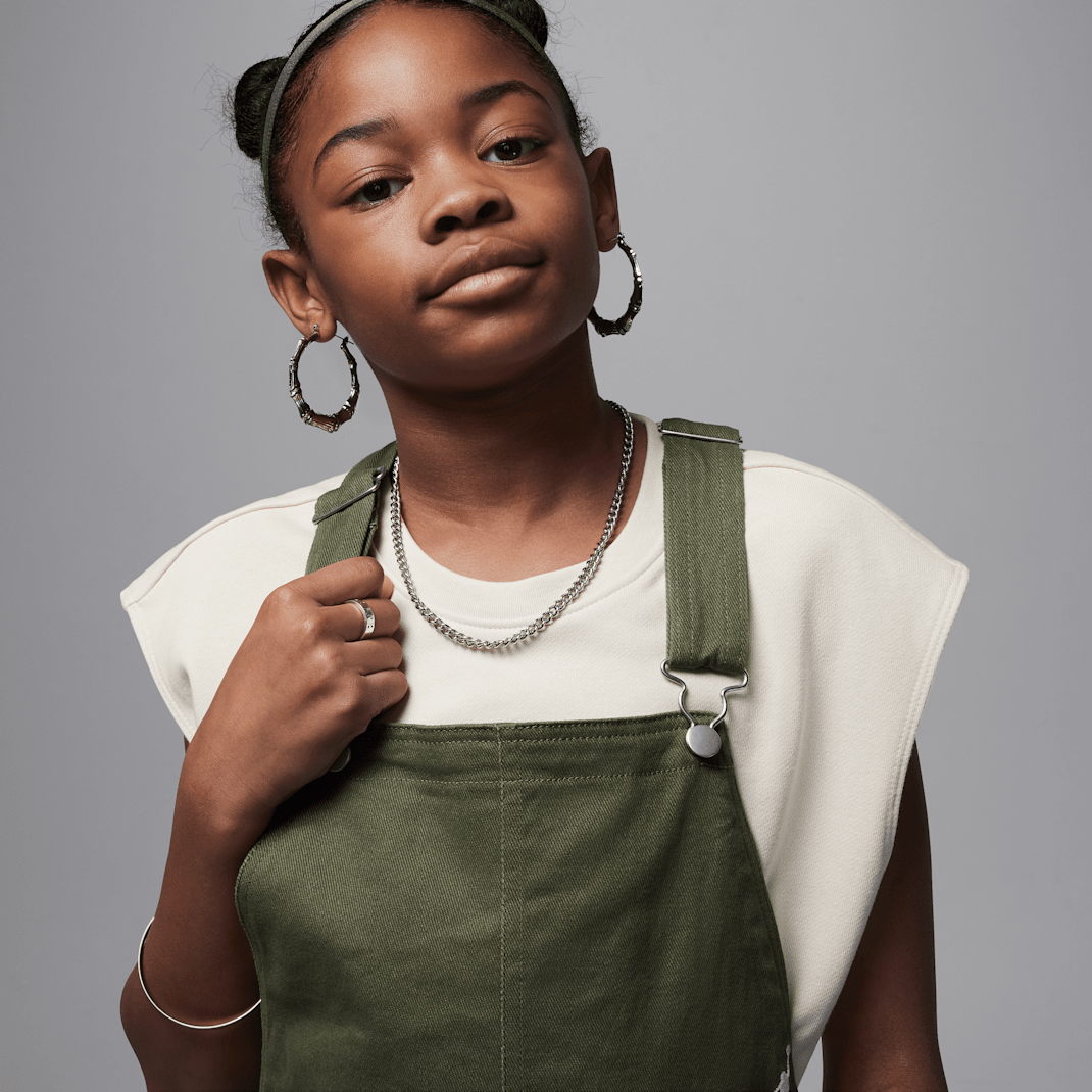 This is the timeless overall dress, Jordan style. It’s made of lightweight cotton denim and features cargo pockets on the sides that are roomy enough for items like your phone, wallet, or keys. The straps are adjustable for a comfy fit, and venting on the back hem provides freedom of movement. Style this dress with any Jordan top for a coordinated look.