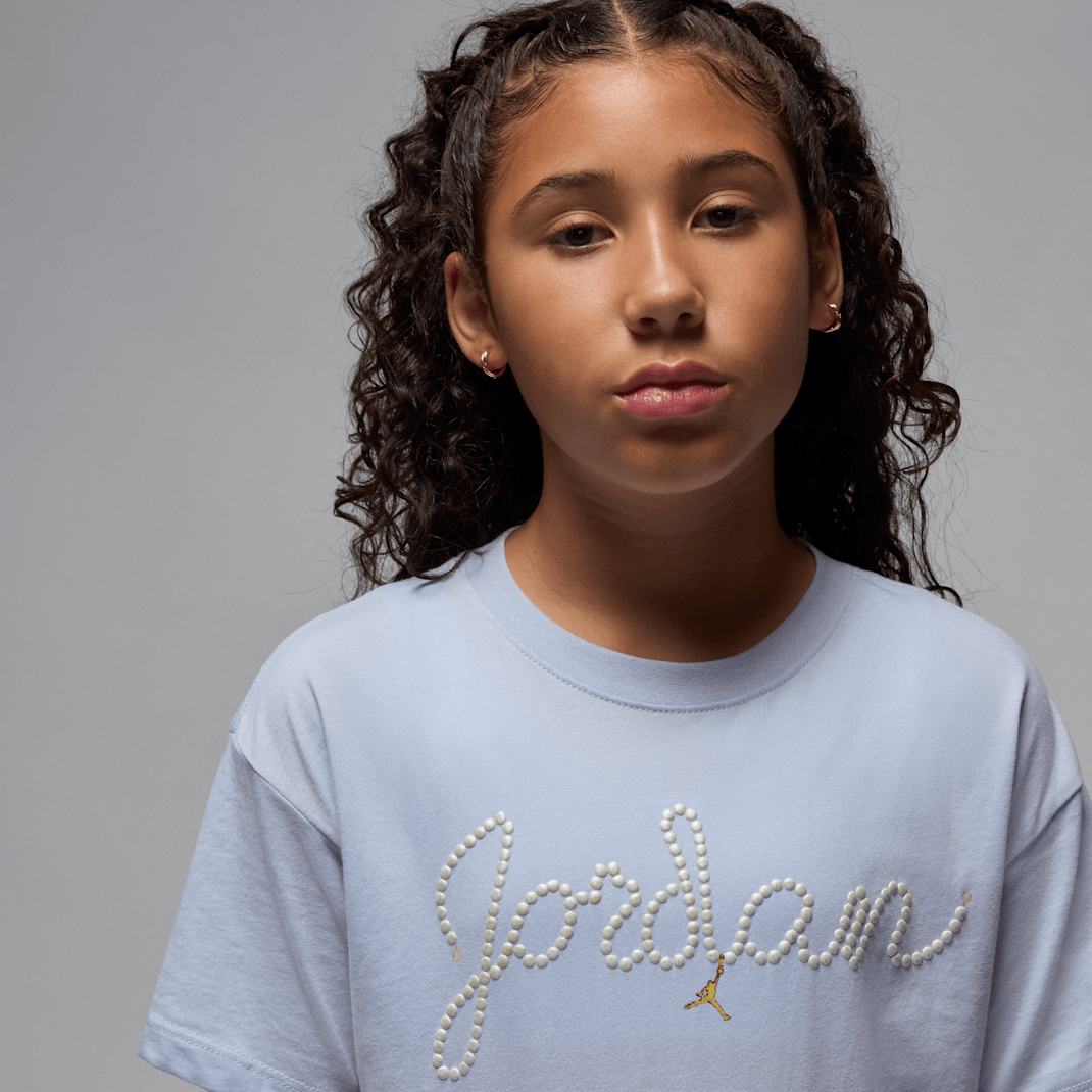 Complement your Jordans with this this tee, which features a textured necklace graphic and is made of blended cotton in a short-sleeve silhouette with a tagless crewneck for comfy wear.