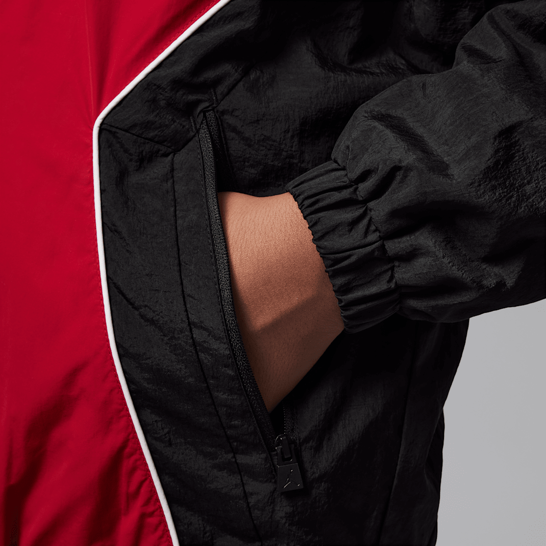 Made of lightweight nylon fabric, this jacket is a great grab-and-go. It has a roomy cut and a full-zip closure than make layering easy, dropped shoulders create a relaxed feel, and zippered pockets help secure small items like your cash, keys, or phone. Banded cuffs and an elasticized hem help secure the fit and retain warmth in chilly winds, while the hood and water resistant finish helps you stay dry in light rains.