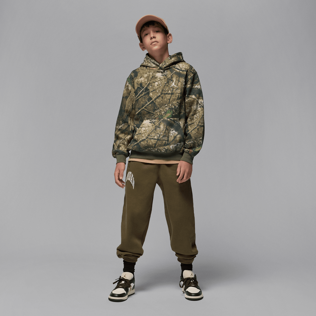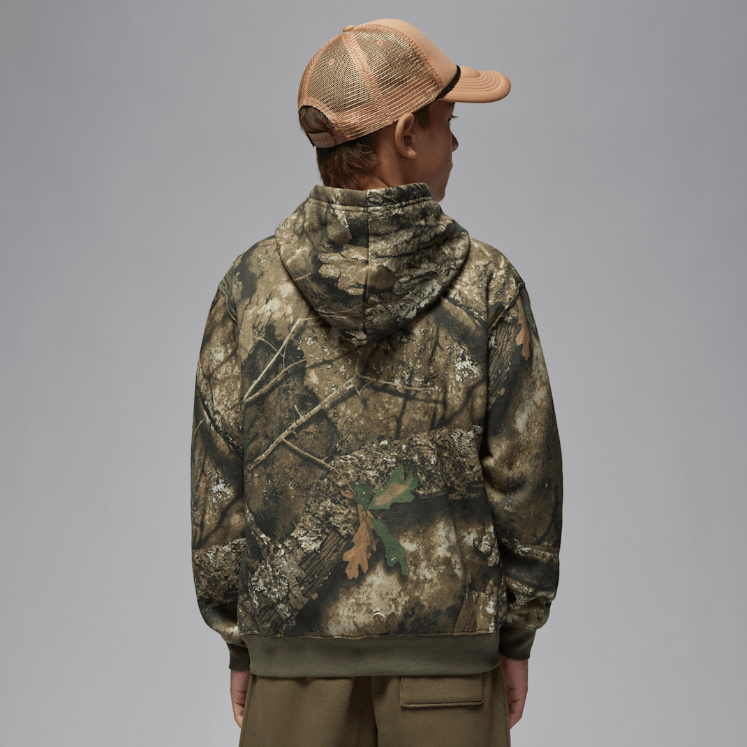 Don’t let the camo print fool you, there’s no blending in when you wear this cozy hoodie, which is made of soft fleece fabric in a roomy silhouette with dropped shoulders to relax the fit. Style with the Jordan Realtree Fleece Pants for a coordinated look that makes a statement.