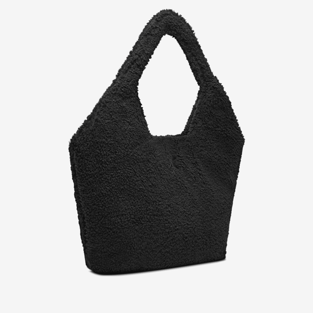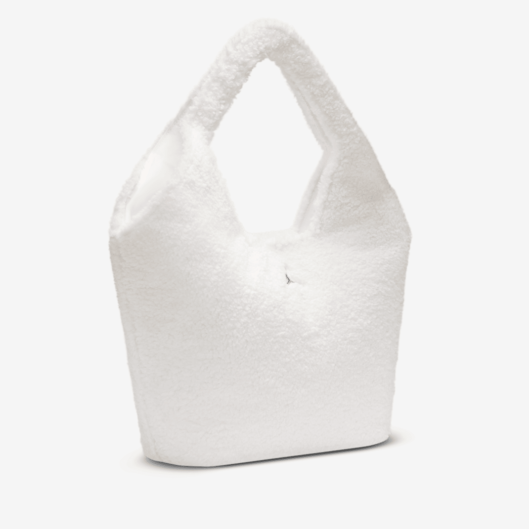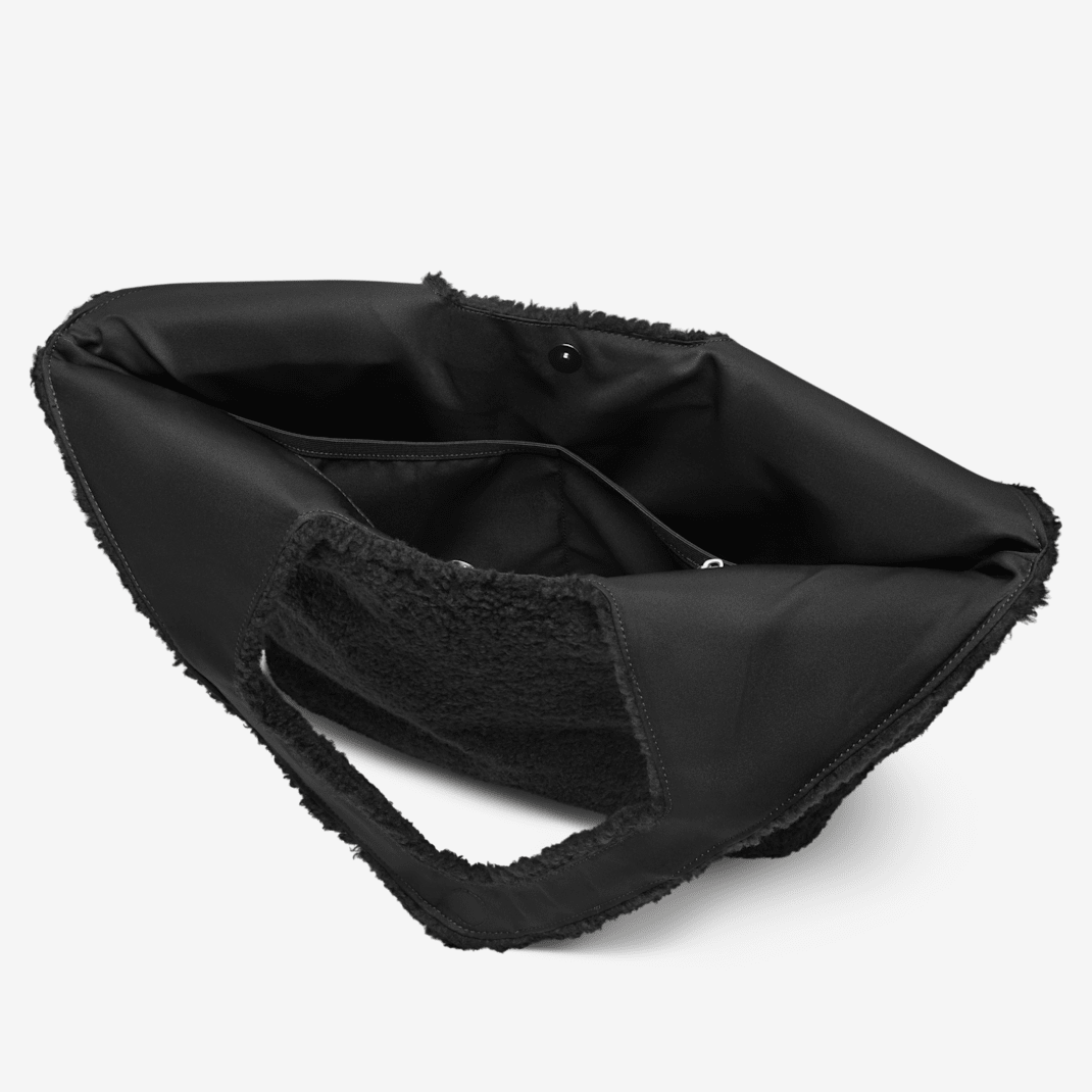 Made of plush high-pile fleece fabric in a unique pentagon shape, this statement tote bag will elevate almost any fit. The spacious main compartment has hidden magnetized snap closures, multiple pockets inside to help you keep your things organized, and the faux leather bottom panel has protective metal feet to help prolong the life of the bag.
