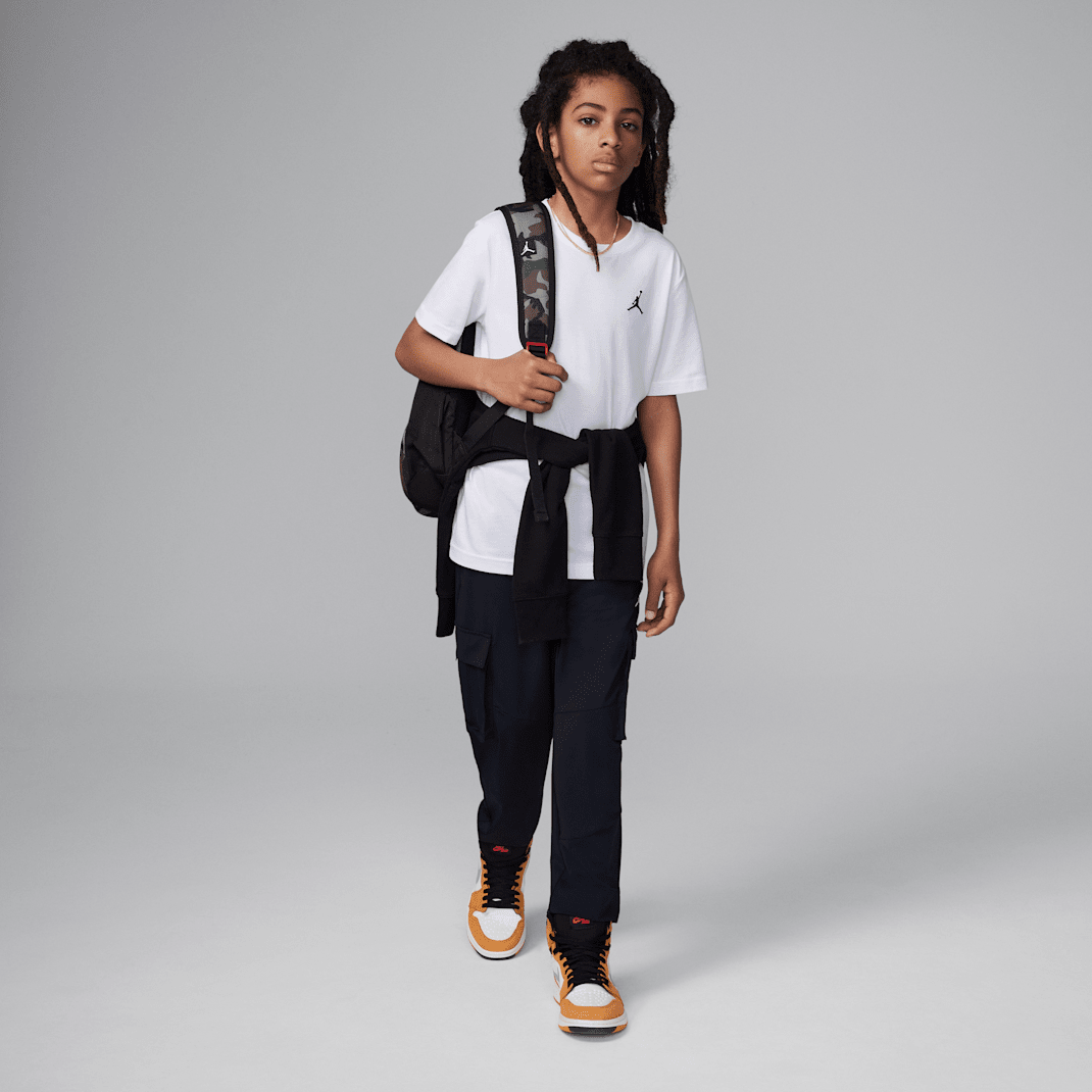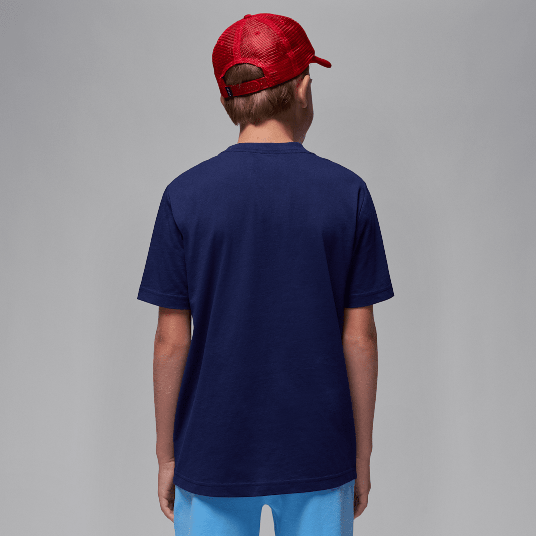 Featuring a small embroidered Jumpman logo, this is the classic “goes-with-anything” tee. It’s made of soft cotton/poly jersey in a timeless silhouette with a tagless crewneck for comfy wear.