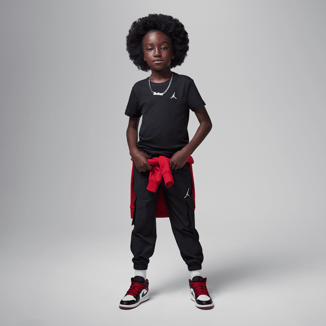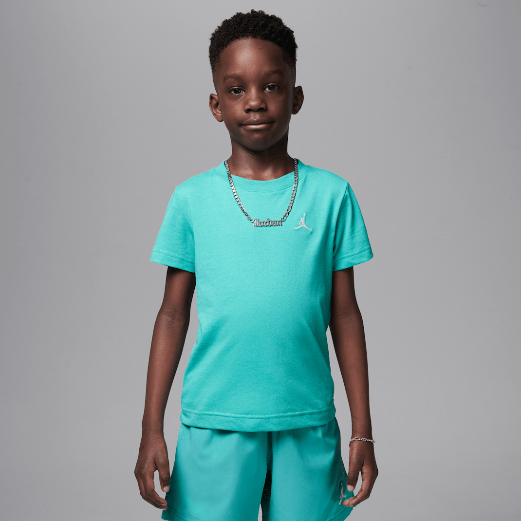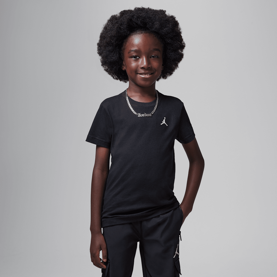 Featuring a small embroidered Jumpman logo, this is the classic “goes-with-anything” tee your kiddo will probably want to wear on the daily. It’s made of soft cotton/poly jersey in a timeless silhouette with a tagless crewneck for comfy wear.