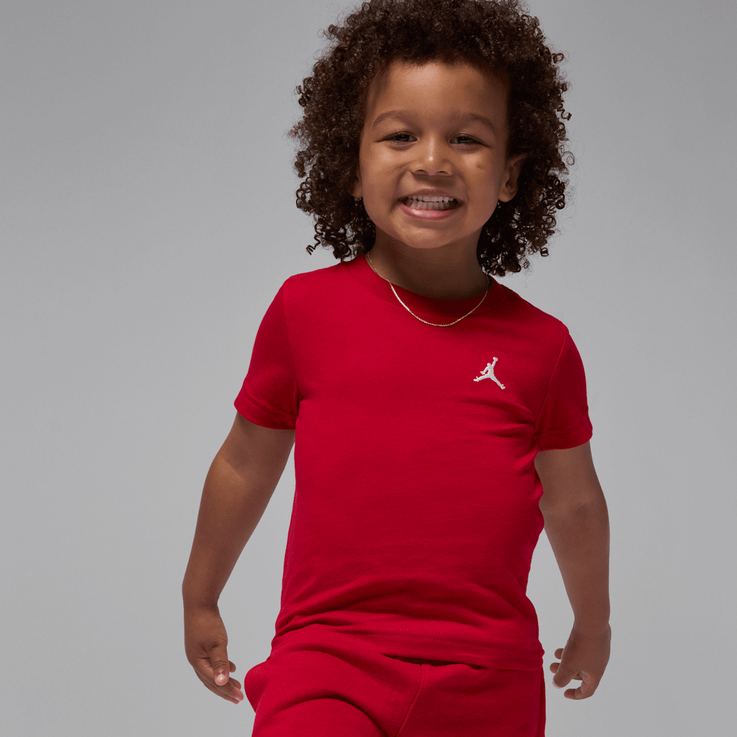 This cotton/poly knit set includes 2 wardrobe essentials for a coordinated look that perfectly complements your little one’s kicks. The jersey knit tee is a classic short sleeve silhouette with a tagless crewneck for fuss-free wear. The matching shorts are made of soft French terry with a stretch waistband for a comfy fit kiddos can play freely in.