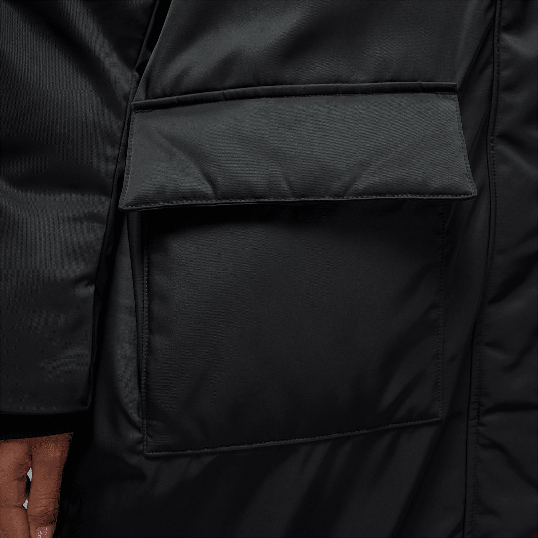 Down insulation, a removable hood and a water-repellent shell with storm flap work with Nike Therma-FIT technology to help you stay warm and dry in cold, wet weather. An oversized fit and shin-length design provide extra coverage.
