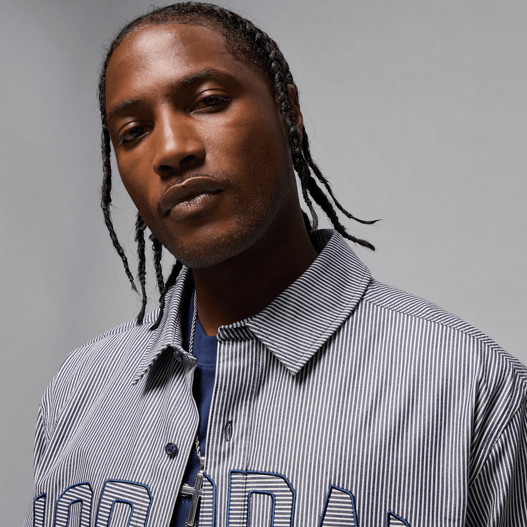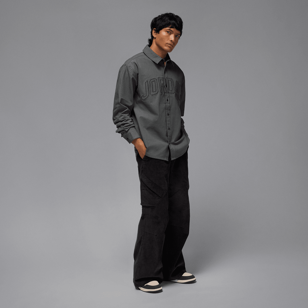 Button up in Jordan style. Made from woven twill with just a touch of stretch, this long-sleeve shirt has a roomy fit and embroidered branding for a relaxed but premium look.