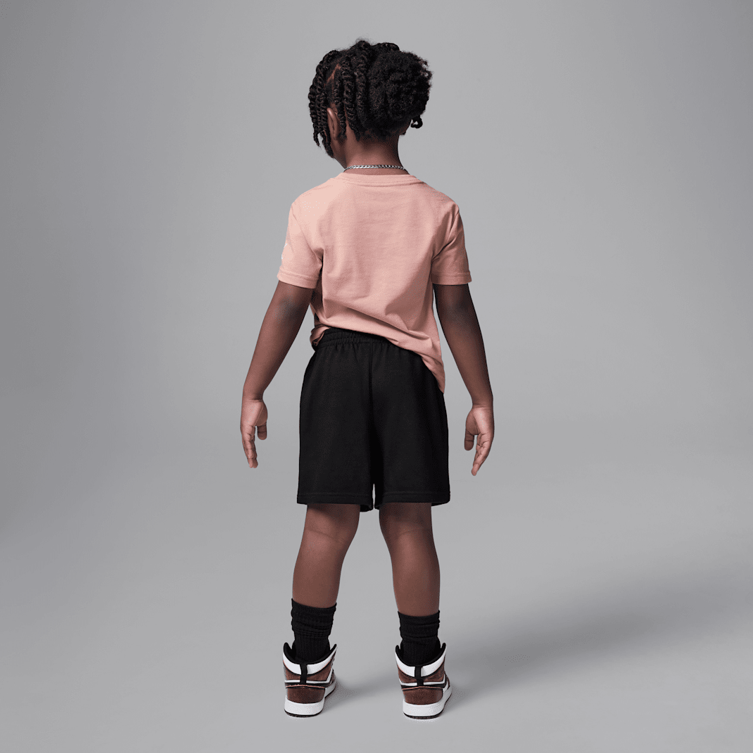 This coordinated 2-piece cotton/poly set is summer your child can wear even when the season is different. The jersey knit tee is a timeless silhouette with a tagless crewneck for easy wear. The matching French terry shorts have a stretch waistband for a comfy fit that equals comfy play.
