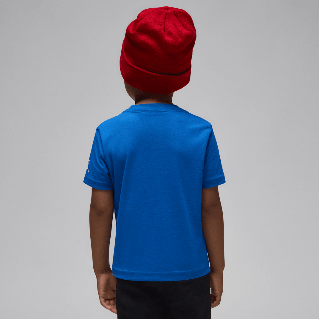 Your child can wear a visual history of our namesake, basketball legend Michael Jordan, in this cotton/poly jersey knit tee. It’s constructed in a classic short sleeve silhouette, with a tagless crewneck for fuss-free wear and dropped shoulders that relax the fit.