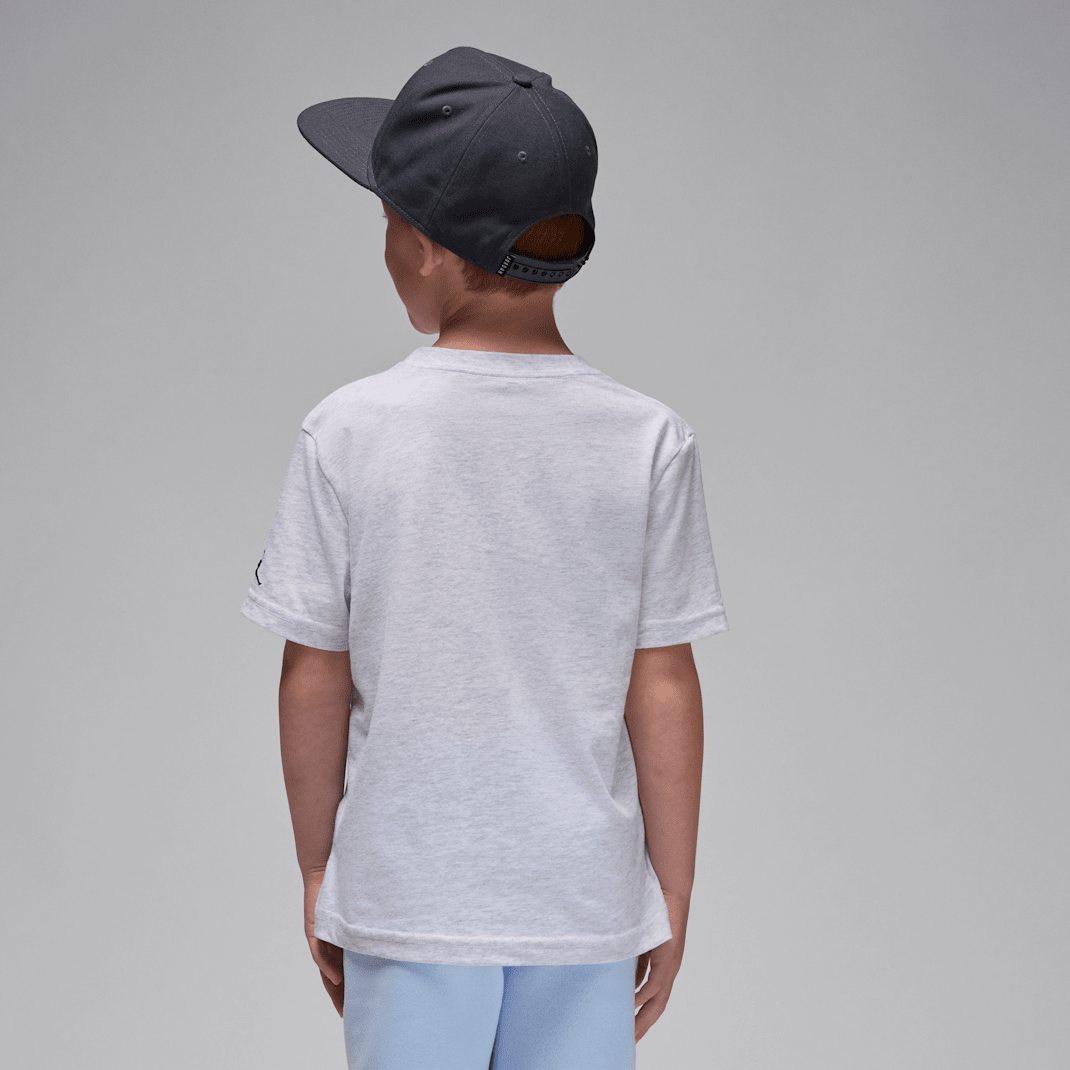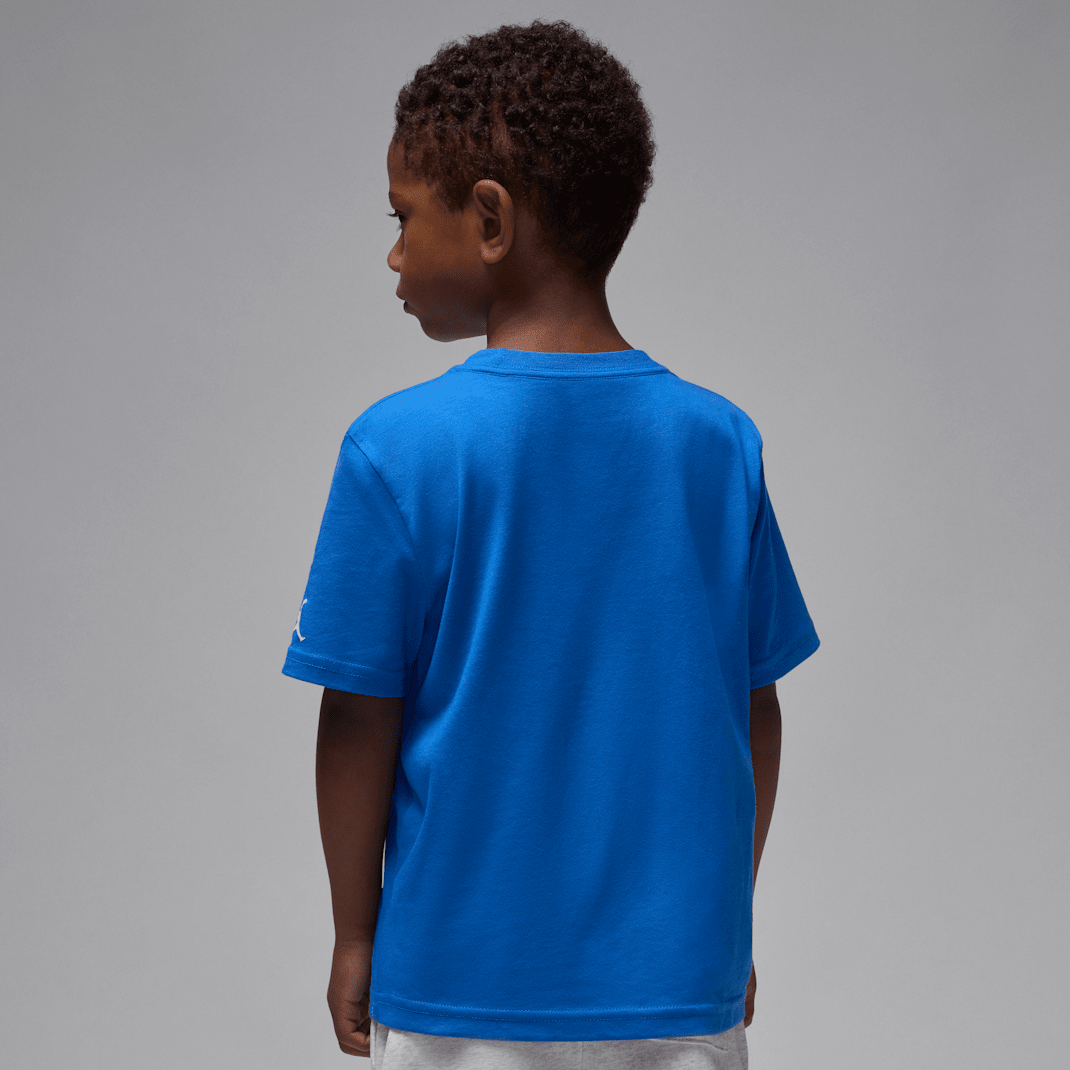 Your child can wear a visual history of our namesake, basketball legend Michael Jordan, in this cotton/poly jersey knit tee. It’s constructed in a classic short sleeve silhouette, with a tagless crewneck for fuss-free wear and dropped shoulders that relax the fit.