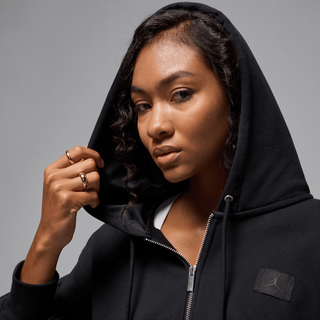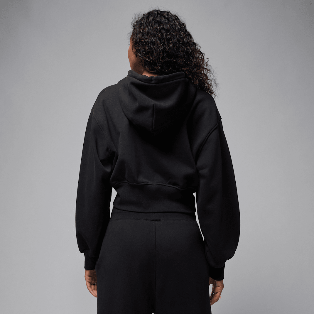With heavyweight French terry fabric and a cropped silhouette, this roomy hoodie is big on comfort and style. A smooth satin lining in the hood helps keep your hair on point.