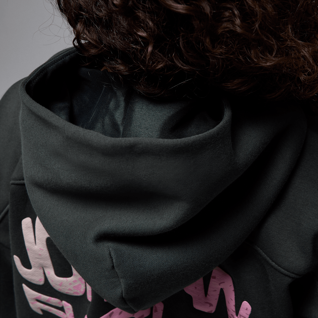 Get cozy in this hoodie, which is an oversized silhouette made of blended cotton fleece that feels smooth on the outside and supersoft inside, with a satin-lined hood that helps protect your hair by keeping it from snagging.