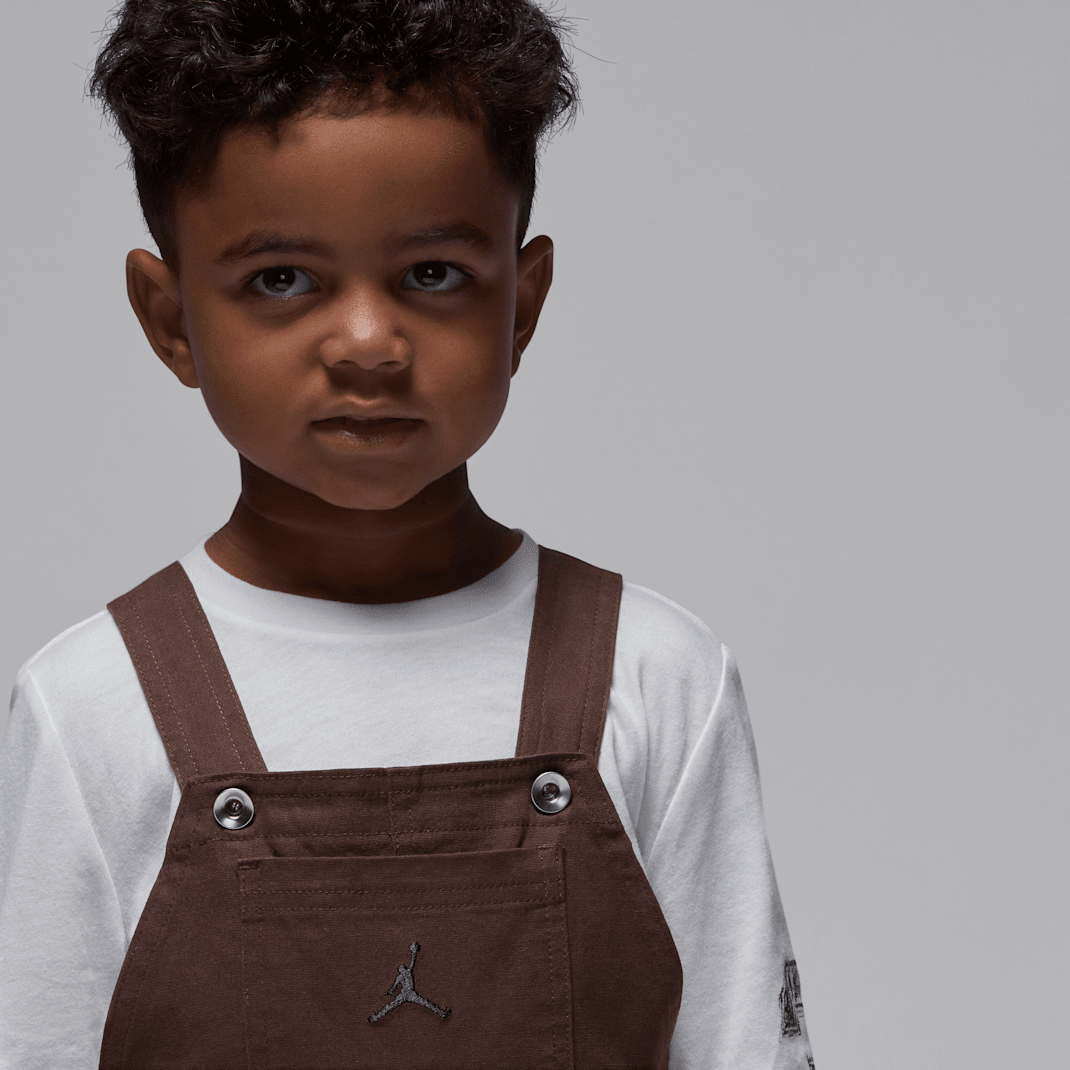 Overalls and a tee – a timeless, easy, outfit no matter a person’s age, and this two-piece set is Jordan’s take on the classic style. The tee is a cozy long-sleeve silhouette and the cotton overalls have added stretch for ease of movement, multiple pockets for your kiddo to stash small items, and adjustable straps for a comfy fit.
