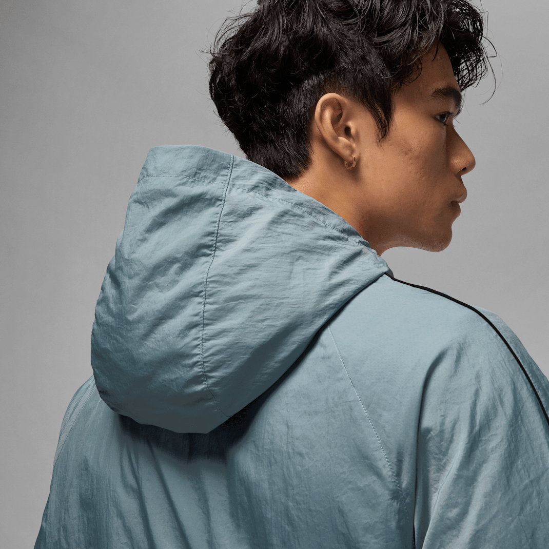 Lightweight, crinkled nylon gives this hooded jacket a classic tracksuit look, with subtle piping that nods toward early Jordan Brand looks. We lined the inside with mesh to keep it comfortable and breathable.