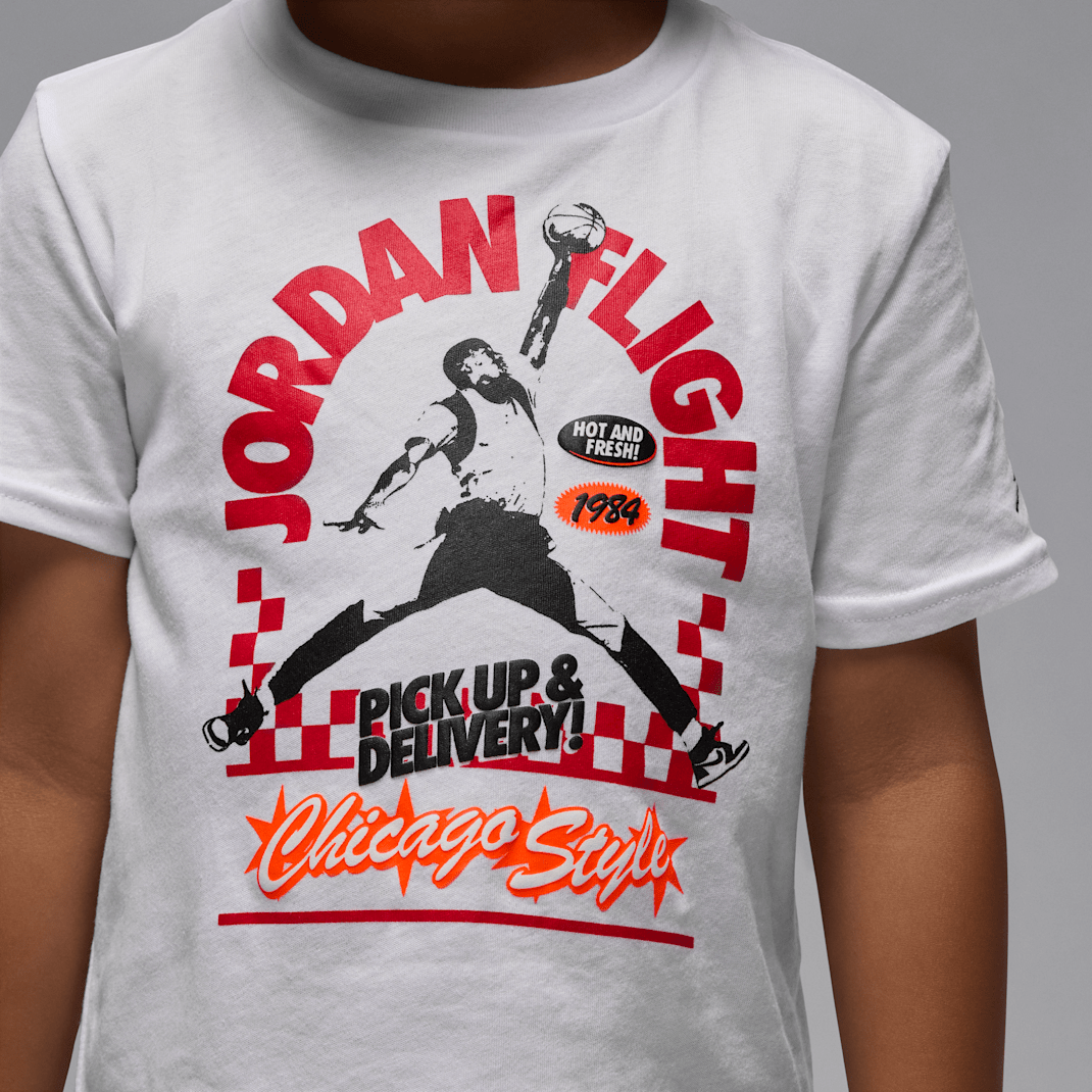 Made of cotton/poly jersey, this graphic tee is hot and fresh out the oven! It has a classic short sleeve silhouette with a tagless crewneck for comfy wear. Style with the Jordan Deep Dish Trucker Hat for a coordinated look that might get your kiddo in the mood for Chicago style pizza!