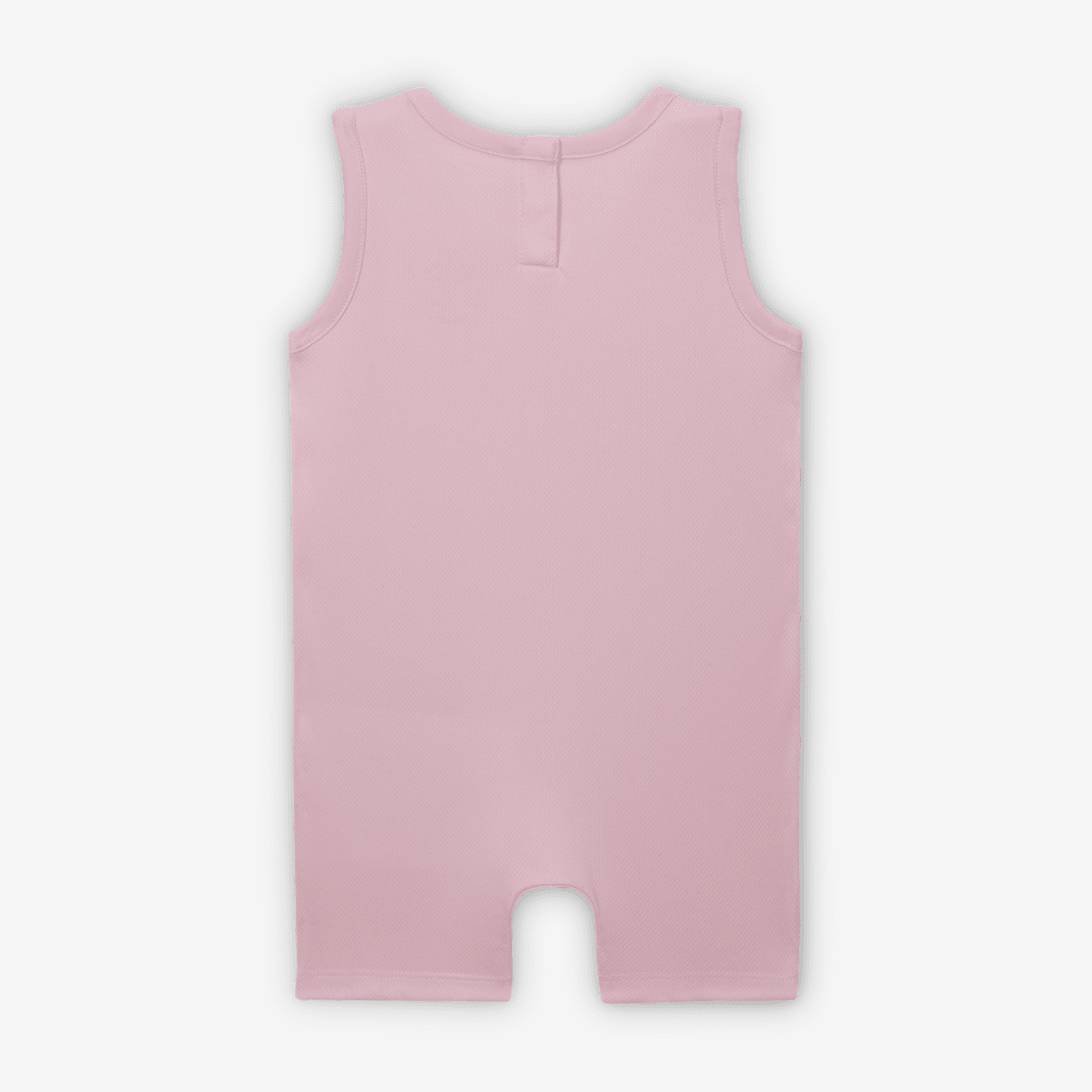 Designed in the style of a basketball jersey, this romper is an all-in-one for the smaller ballers-to-be, crafted of breathable poly mesh fabric. It has soft rib knit trim on the crewneck and armholes, as well as snappy tape closures on the back and inseam for easy dressing and diaper changes.