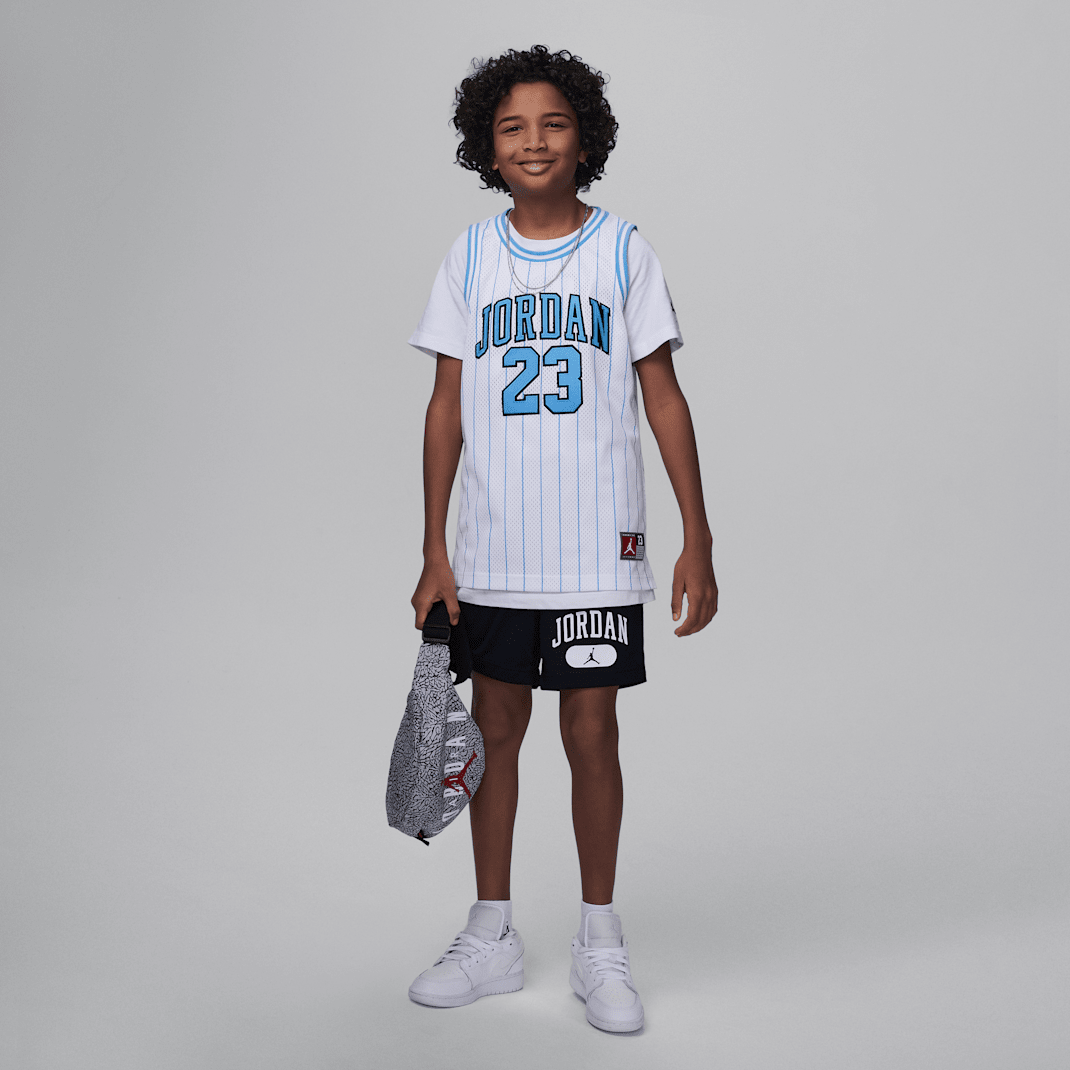 Made of breathable poly mesh fabric, these shorts are classic phys ed style with a Jumpman touch. They have a stretch waistband with drawcord so you get a fit you move comfortably in whether running laps, busting out push-ups or any other activity.