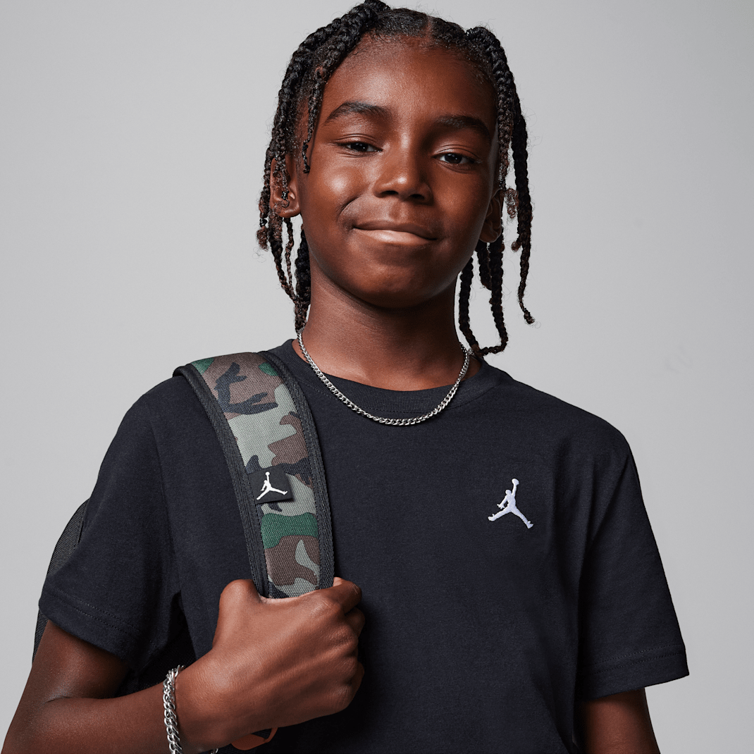 Featuring a small embroidered Jumpman logo, this is the classic “goes-with-anything” tee. It’s made of soft cotton/poly jersey in a timeless silhouette with a tagless crewneck for comfy wear.