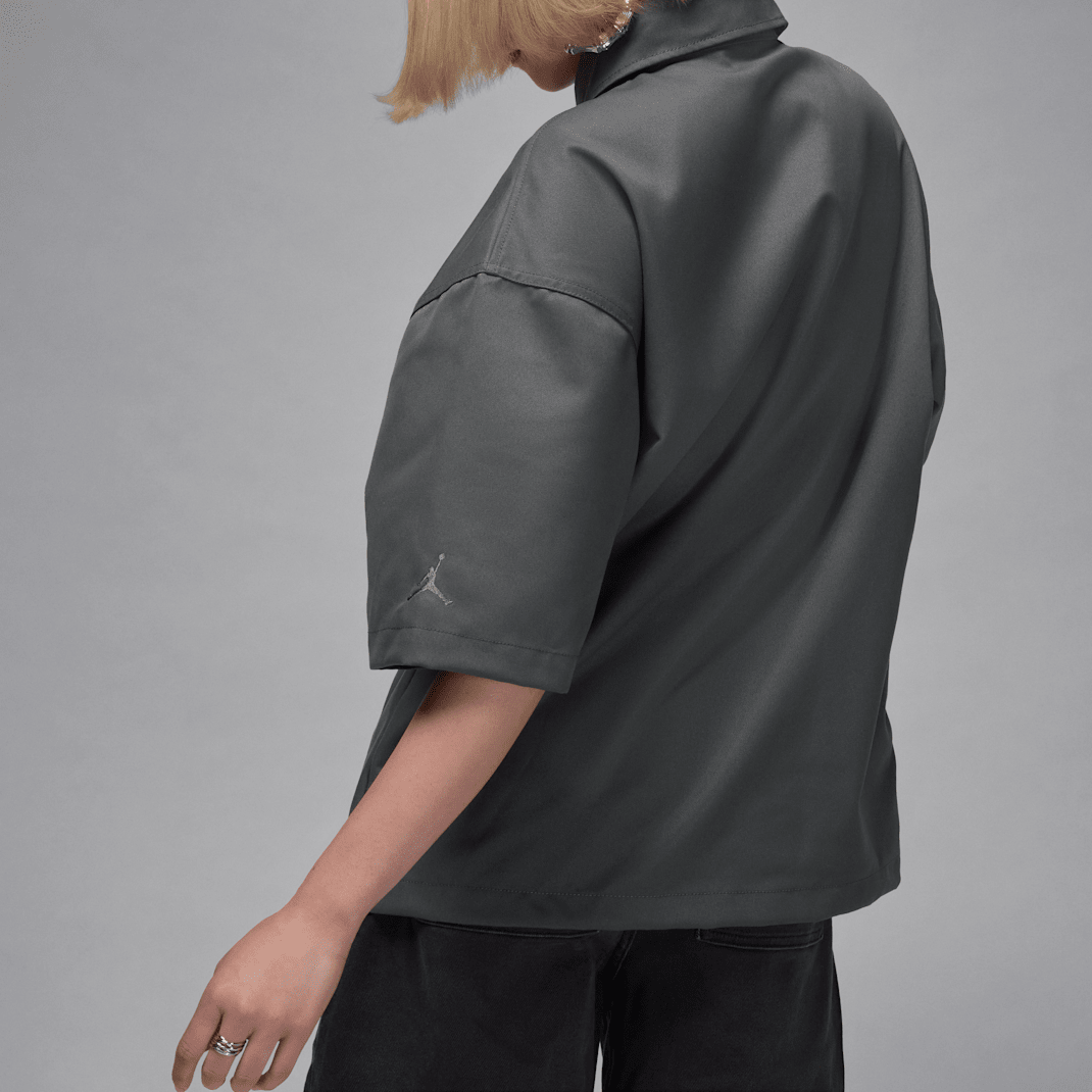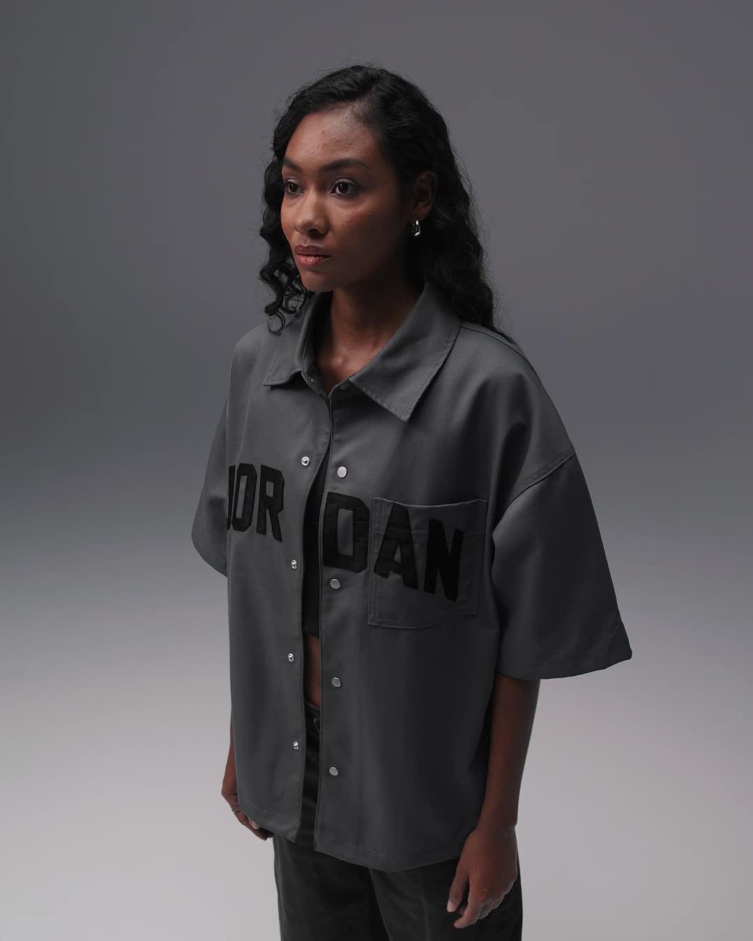 Sturdy, structured twill fabric and a loose fit keep this snap-front top ready for solo wear or a layered look. See how the “Jordan” patch lettering layers over the shirt’s opening and chest pocket? It’s proof we obsessed every detail.
