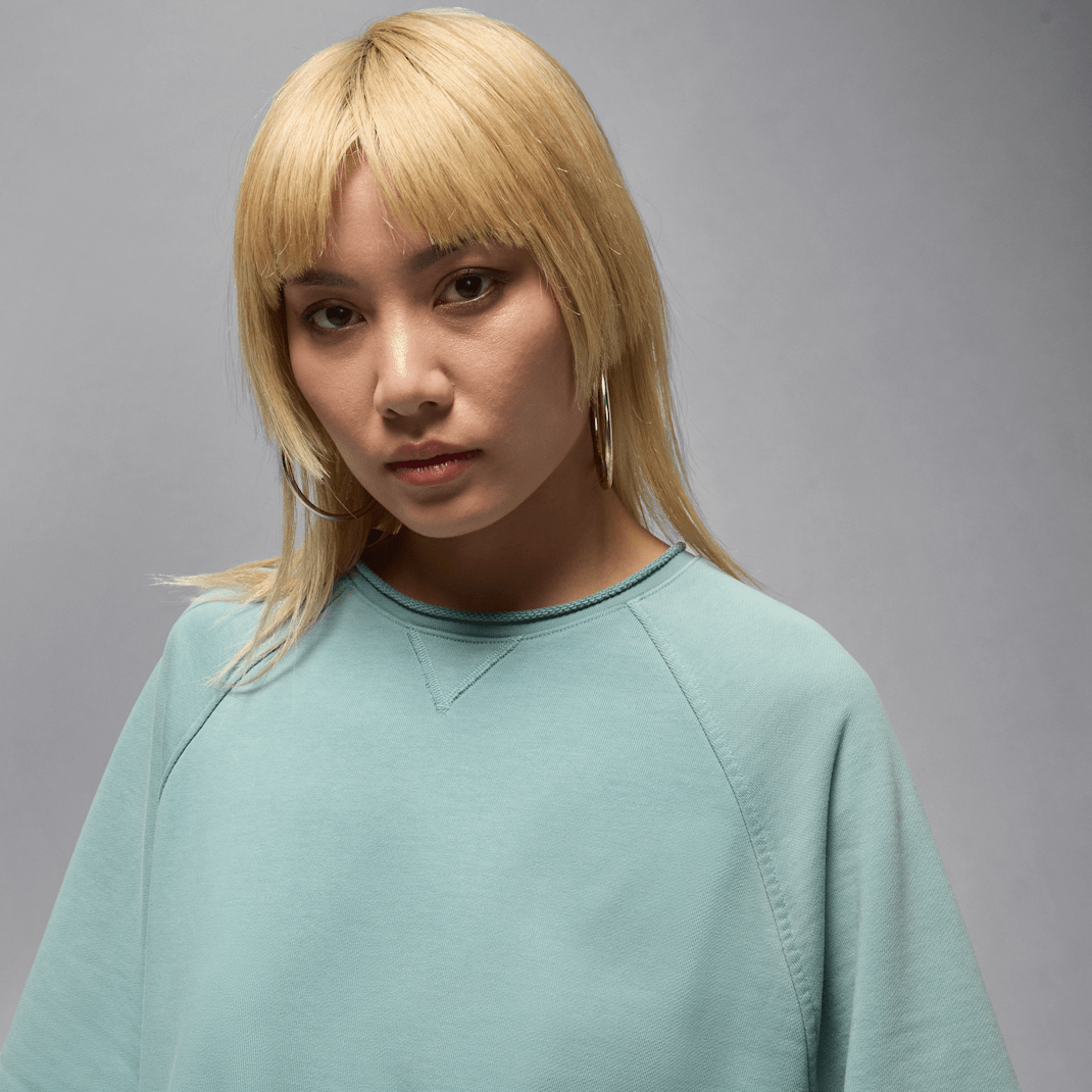Perfectly oversized. Perfectly comfortable. An allover wash treatment gives this heavyweight French terry top a worn-in look and feel. Raw edges at the hem, collar and sleeves add a bit of attitude to your look.