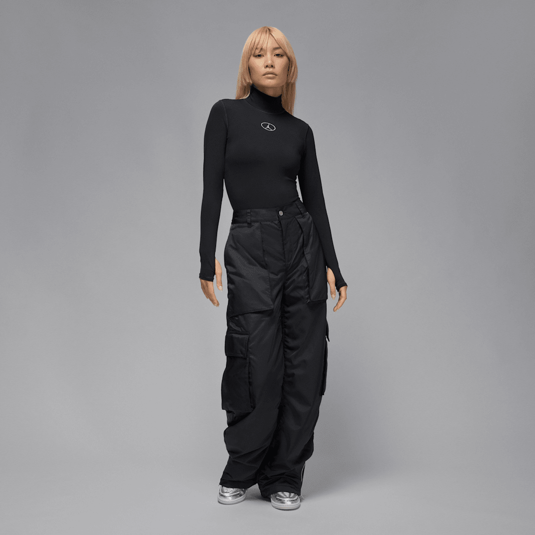 This peachy soft bodysuit brings you a base layer with some attitude. Hidden zipper and minimal snaps maintain your comfort while a high hip cut and turtleneck give you serious streetwear style.