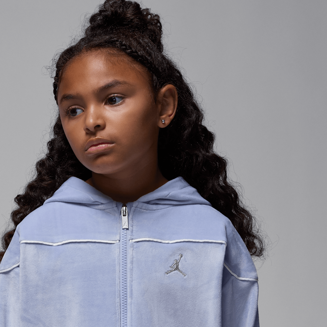 Featuring design inspired by the classic tracksuit, this two-piece set is made of velour fabric that feels soft and cozy, and will complement your little one’s Jordans. The hoodie has dropped shoulders that relax the fit, modern dolman sleeves, and a full-zip closure that makes layering over a tank or tee easy. The matching pants have a stretchy waistband for a comfy fit, and wide legs that allow for lots of movement and play.