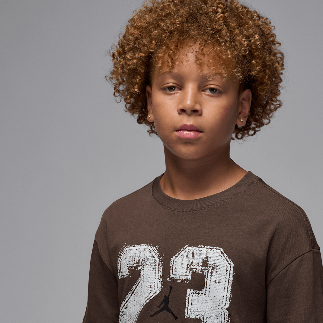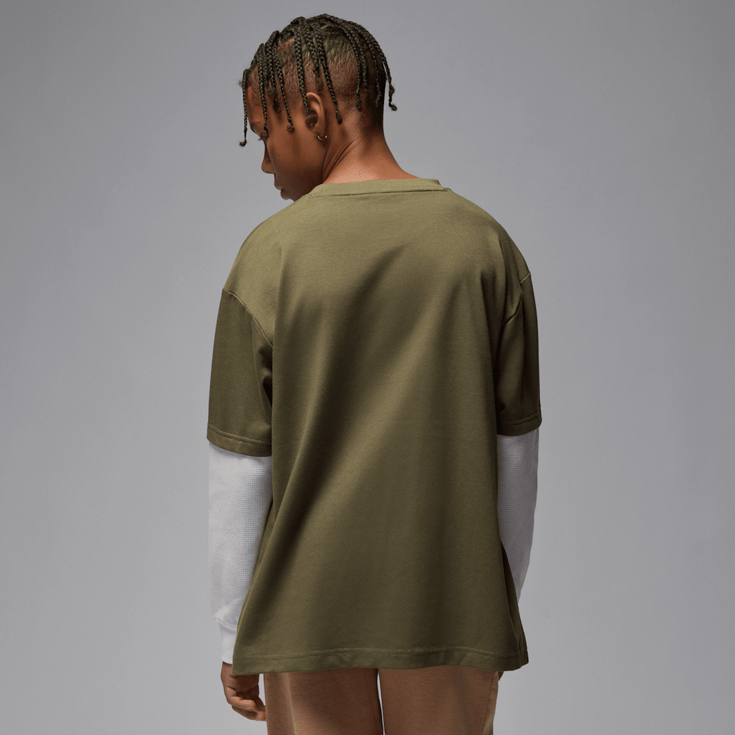 Get a little extra warmth without sacrificing style or overheating with this jersey knit tee. It’s a timeless silhouette with a tagless crewneck for a comfy fit and features colorblocked long sleeves layered under the short sleeves to create a laid-back, twofer style that pairs great with any Jordan bottom or a pair of jeans.