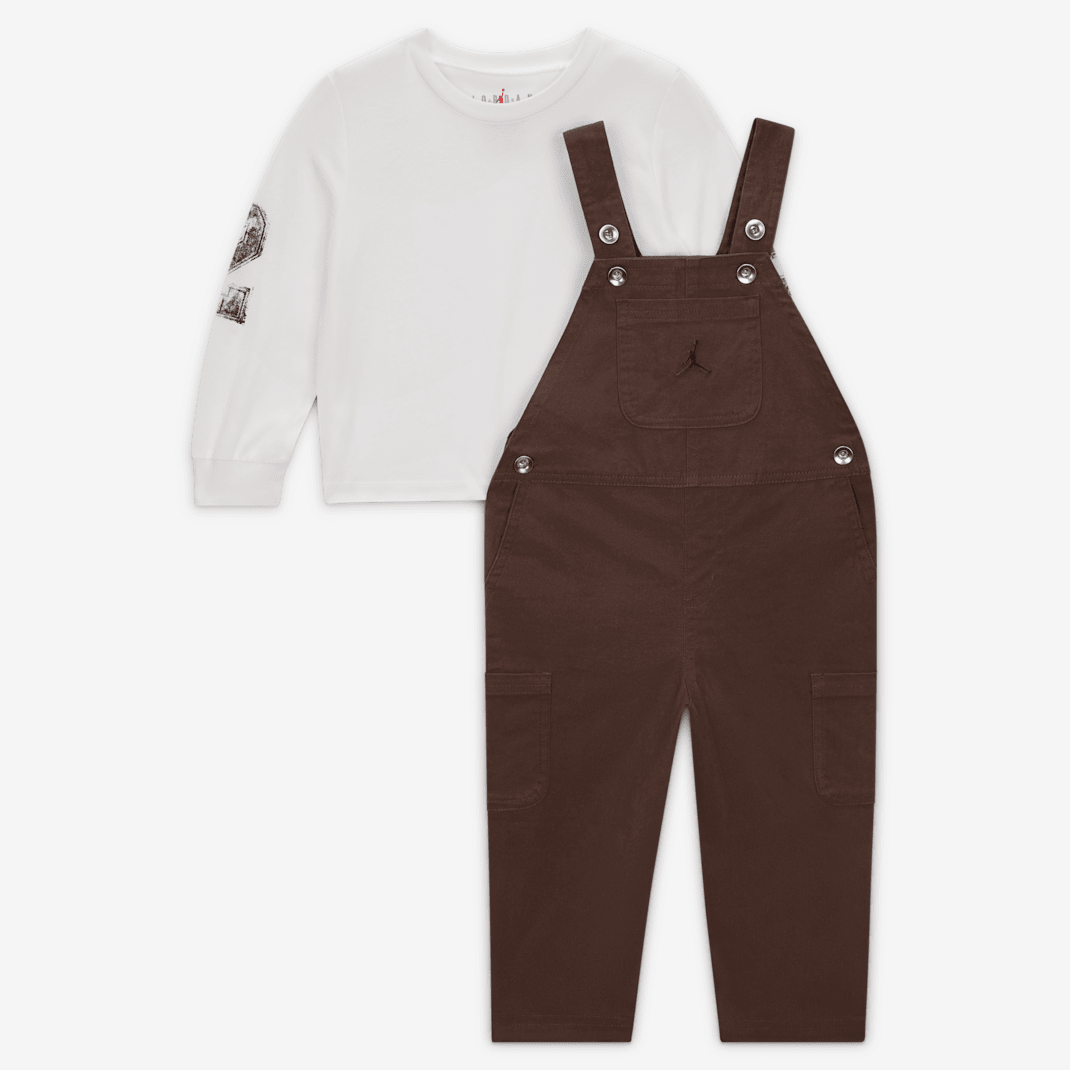 Overalls and a tee – a timeless, easy, outfit no matter a person’s age, and this two-piece set is Jordan’s take on the classic style. The tee is a long-sleeve silhouette with snappy tape closures on the shoulder for easy dressing. The cotton overalls have added stretch for ease of movement, multiple pockets for your kiddo to stash small items, and adjustable straps for a comfy fit.